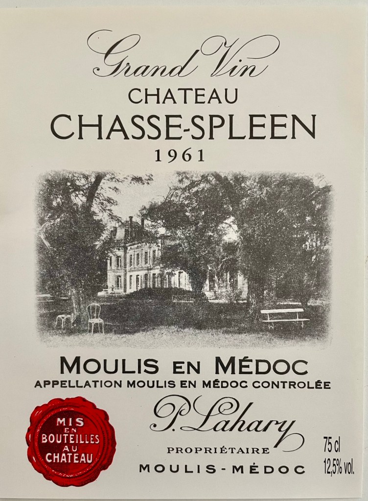 Château Chasse-Spleen. Appellation Moulis. Acheté en 1976 par la famille Merlaut, il est le seul des six à avoir été reclassé au sommet lors du classement (annulé) de 2003.